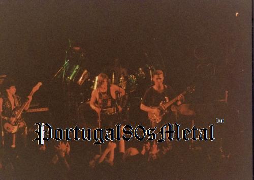 From Barreiro, Setúbal came Black Cross. Formed in 1985 by bass player João "Francês" Ramos (ex-Air Force) who contacted guitarrist Paulo Henrique to form a Heavy Metal band, Black Cross. João contacted another friend, Filipe "Bombas" who took the drums. After a period of several months with rehearsels and looking for a vocalist, Paulo Henrique leaves the band for personal reasons. Reduced to a duo the group continues rehearsing and by this time follows the acquisition of the new vocalist, Quim. The guitars are secured through the help of Toninho (Asgarth /Ibéria). On December 20th 1986 Black Cross played their first concert, at the Rock Rendez Vous venue. Soon after Quim quits the band and enters Ginha. With him, they try to record a demo tape, but that never happens. Ginha eventually leaves the band. They find a new replacement, Rui "Destruction" Subtil. They contact with Ronnie James Dio to collaborate in the project Hear n`Aid, Dio`s response to them was that he would gave all the support for organizing a concert featuring Portuguese Heavy Metal acts, whose funds would accrue to Hear n Aid project. In this context of euphoria they eventually recorded their 1st demo tape, with the tracks: "Genocidio", "Heavy Metal", "Sexta Feira 13", "Minotauro" and "Chamamento Para a Morte". In the beginning of 1987 the line up consisted in João "Francês" Ramos bass, Filipe "Bombas" drums, João "Relâmpago" solo guitar and Adalberto "X" vocals (performed only one gig with Black Cross). Soon after, Rui Subtil returns to the band. On March 20th they performed live at a festival organized by Radio Márgem Sul, before 1,500 people. The festival was broadcasted live on radio. Meanwhile the group is invited by RTP (National Television Channel) to record a short advertising spot against drugs, "Não! á dependência" (No to dependence). In March both guitarrists leave the band to pursue a solo career. Enters Rui Fingers (V12) and ensures all the guitars until the end of the band. Black Cross were one of eight bands, together with Tarantula, STS Paranoid, Procyon, Navan, Satan`s Saints, Devil Across and Blizzard, to enter the sessions for the first Heavy Metal double album, live at the Rock Rendez Vous, June 10th 1987, but that never materialized. During their performance in July 18th 1987 at the Ferroviários pavilion, Barreiro, singer Rui Subtil breaks a knee. Black Cross split up in the summer of 1987. The main reason came from the bassist João Ramos, who tired of the band's situation in the national metal scene, including the relationship with other bands, decided to leave the group, and consequently finished the project. The band farewell concert was in Vila Nova de Mil Fontes, July 31th 1987.demo tape "Sexta Feira 13" ©1987 Metal Killers fanzine