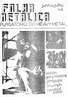 Folha Metálica (Metallic Sheet) was the very first fanzine made in Portugal. It was the official journal of Purgatório Do Heavy Metal Fan-Club which was the very first Portuguese Heavy Metal Fan-Club. It was released, for associates, 8 issues: #1 - Jan 84, #2 - Feb 84, #3 - Mar/April/May 84, #4 - June/July 84, #5 - Aug/Sep 84, #6 - Oct 84, #7 - Jan 86, #8 - Feb 86), before the Fan-Club ended.