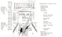 From the city of Faro, Algarve came Harum (Harum means Faro in Roman), that emerged in October 1989 by Gualter Fernandes guitar and João Mendes bass. To these join up later João Belo guitar, Rui Ponte vocals and Frick drums, that for lack of dedication is replaced by José Augusto. Their first gig takes place in Barracão in June 2th 1990. After a few shows the band recorded their first demo "Born in Hell", composed of 10 songs with a sound quality quite weak. After having been expelled from their rehearsal room the band gets into another one. Meanwhile they organized the concert "Mosh in Hell" in which a video would be made with the songs "Cemeteries", "Metal Boys" and "Self Destruction". In turn these three tracks were those that they would sent to some music contests, one in Lisbon and another in Loures (Lisbon area). Not being counted for Loures contest and know the clearance for the Lisbon contest, they began rehearsing hard all five songs that would make at Johnny Guitar, in May 4th 1991. Meanwhile they played some concerts, among which stands out the first part of the band Peste & Sida in Faro, for about 3,300 people, April 19th and in Loulé on the following week with Censurados. A few weeks later they went to Silves to play with Procyon, August 30th 1991. On December 7th they go to Alcobaça and played along with Exomortis and Tropa de Choque. Through more competitions and music concests the band enters the studio to record their second demo tape "Ticket To Hell". Which marks the debut of Cesário Gadelha, the singer who replaced Rui Ponte. In January 25th 1992 they begin their "Ticket To Hell Tour" and the song title of their demo is included on the compilation "The Birth of a Tragedy" on MTM Records. With some dates yet unfulfilled, Harum find themselves deprived of their vocalist Cesário and after two weeks also of their guitarrist João Belo. Cesário offered to guarantee all the dates of the tour until the entry of a new vocalist. During the third anniversary in Novemver 12th 1992, Nuno Fernandes joins the guitar spot, but the place of vocalist takes about a month to be filled. After listening to 15 singers, Cidália Salvador is chosen. Harum released in 1995 a self financed 8 track CD, "The Creation". The line up was Gualter Fernandes guitar, Nuno Fernandes guitar, José Lopes drums, João Mendes bass and Rui Santana vocals.