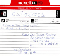 Espectros were originally from Odivelas, Lisbon, which appeared in 1979. In 1987 they changed their music style into a more Hard sound. The line up was formed by Rui Rodrigues vocals, Renato Ribeiro guitar, Tininho bass, Raimundo drums and Costa keyboards. Between June/ August 1987 they recorded in their rehearsal room into a 4-track Fostex, 2 tracks: "A Rainha de Blue Jeans" and "Miúda". Songs like "Concerto", "Manipulação", "Sonho" and "Sinistrado" were part of the band's repertoire. They played several concerts across the country, including opening for Xutos & Pontapés at the Pavilhão de Odivelas.