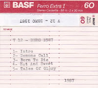 V12 were from Algueirão, Sintra, and their history starts back in 1983/ 84, when five friends decided to form a band. They were Rui Fingers guitar, Paulo Ossos guitar, Rafael Maia vocals, Zé Paulo bass and Carlos drums. In 1985 Carlos leaved. Alberto Garcia (Rádio Macau group) joins as a drummer. Officially V12, as a band, born in March 1987. The group played their first gig in July 18th 1987, at the Ferroviários Pavilion, Barreiro, opening for Black Cross. A week later, July 26th a 2nd gig, in Lourel at the local Sporting Club. On August 15th, they return to their hometown, Nem Martins, with STS Paranoid and Satan`s Saints they performed at the Nem Martins Sport Club pavillion. On October 18th 1987 the group recorded at the Rádio Macau private studios, approximately 90m of tape. Recorded at first take with no overdubs, assisted by Ricardo (brother of Rádio Macau vocalist Xana). From that recording they extracted 4 tracks that would be released as their first demo tape. The songs were: "Demons Call", "Born To Die", "Hot And Sweet" and "Tales Of Glory".