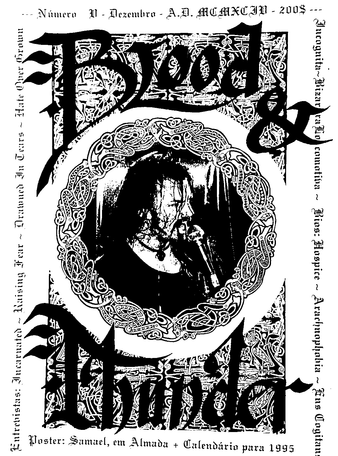 Blood & Thunder fanzine appeared in March 1993 in the Almada area. Ana Maria Pires was in charge of the project, which lasted until #7 in 1996. She was also manager of bands such as Bloodshed and Fallacy.